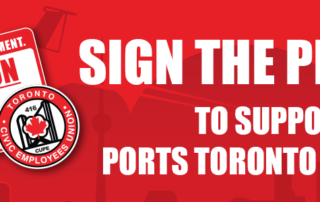 Petition to Support Ports Toronto Workers Everyone should retire knowing how much money they will have in their pocket. Ports Toronto employees work hard to keep you safe. Show your support by helping keep their pensions safe. Please sign this petition to support PortsToronto workers, the protection of decent jobs and secure retirement. [...]